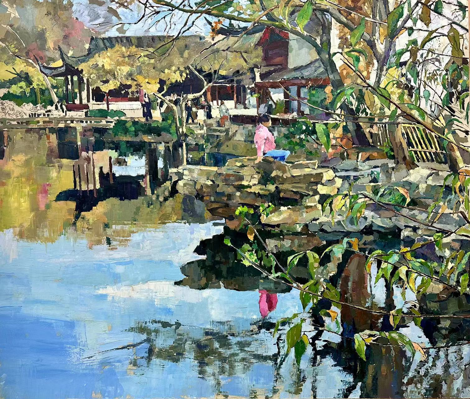 Naughty grandma in Suzhou garden