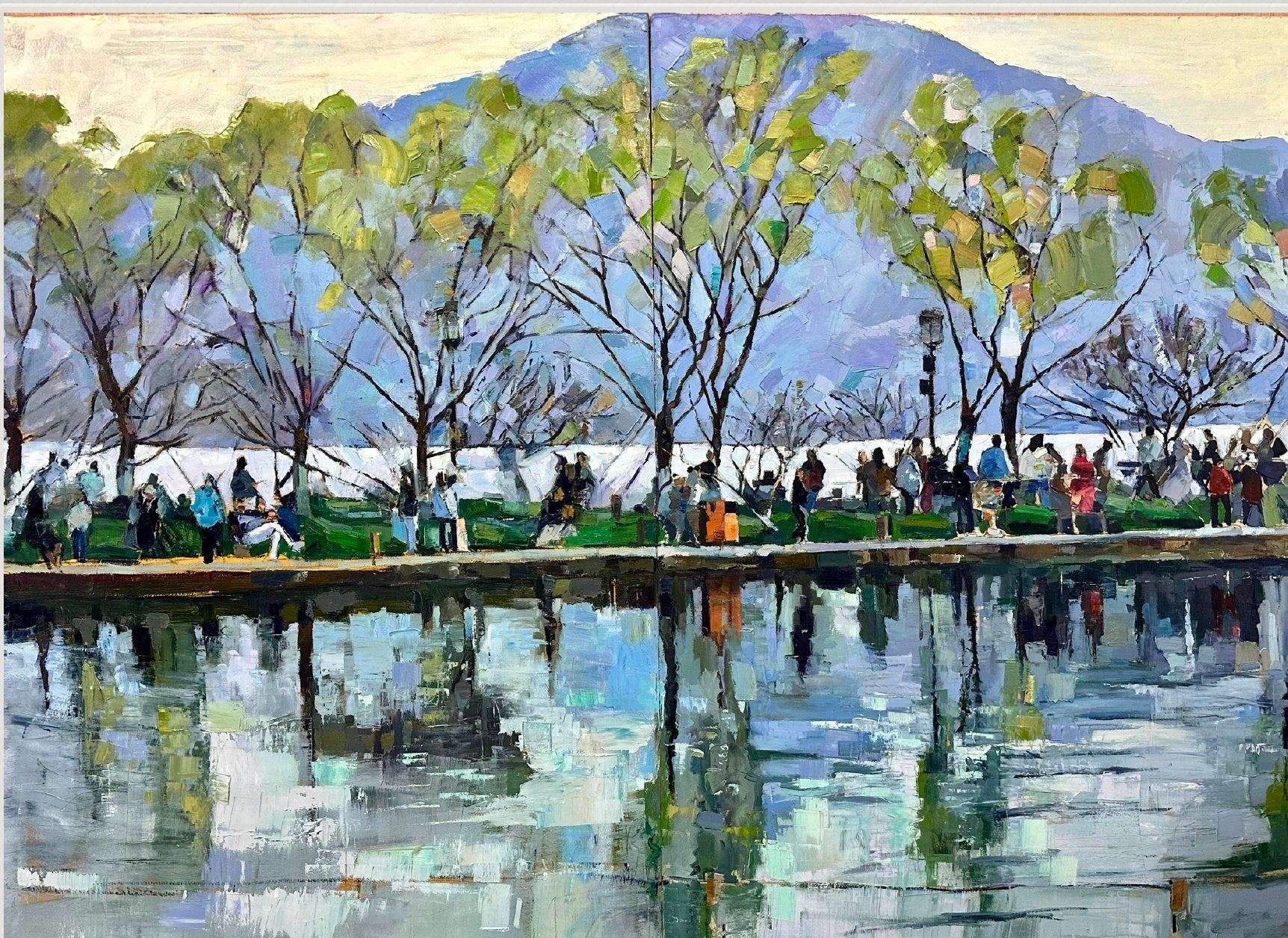 The water and trees vibrate with crowds